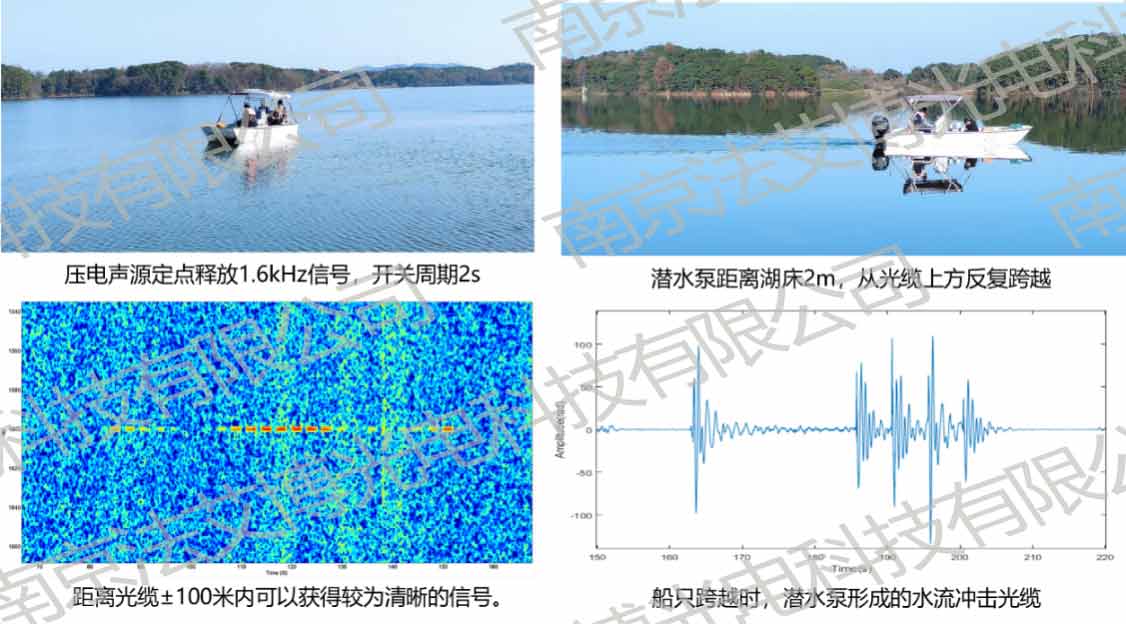 2020年12月中旬,我司聯(lián)合南京大學(xué)團(tuán)隊(duì),攜帶自主研發(fā)的Ada-5032E型分布式光纖微擾動(dòng)監(jiān)測(cè)儀前往湖北省某大型湖泊試驗(yàn)場(chǎng),開展分布式光纖水聲探測(cè)技術(shù)的湖試。數(shù)據(jù)分析結(jié)果表明,該方案能有效識(shí)別并定位錨害、水流沖擊、換能器工作和水下光纜拖拽等事件,對(duì)于水下纜線健康監(jiān)測(cè)、水下航行器入侵和地質(zhì)災(zāi)害預(yù)警等具有重要意義。
