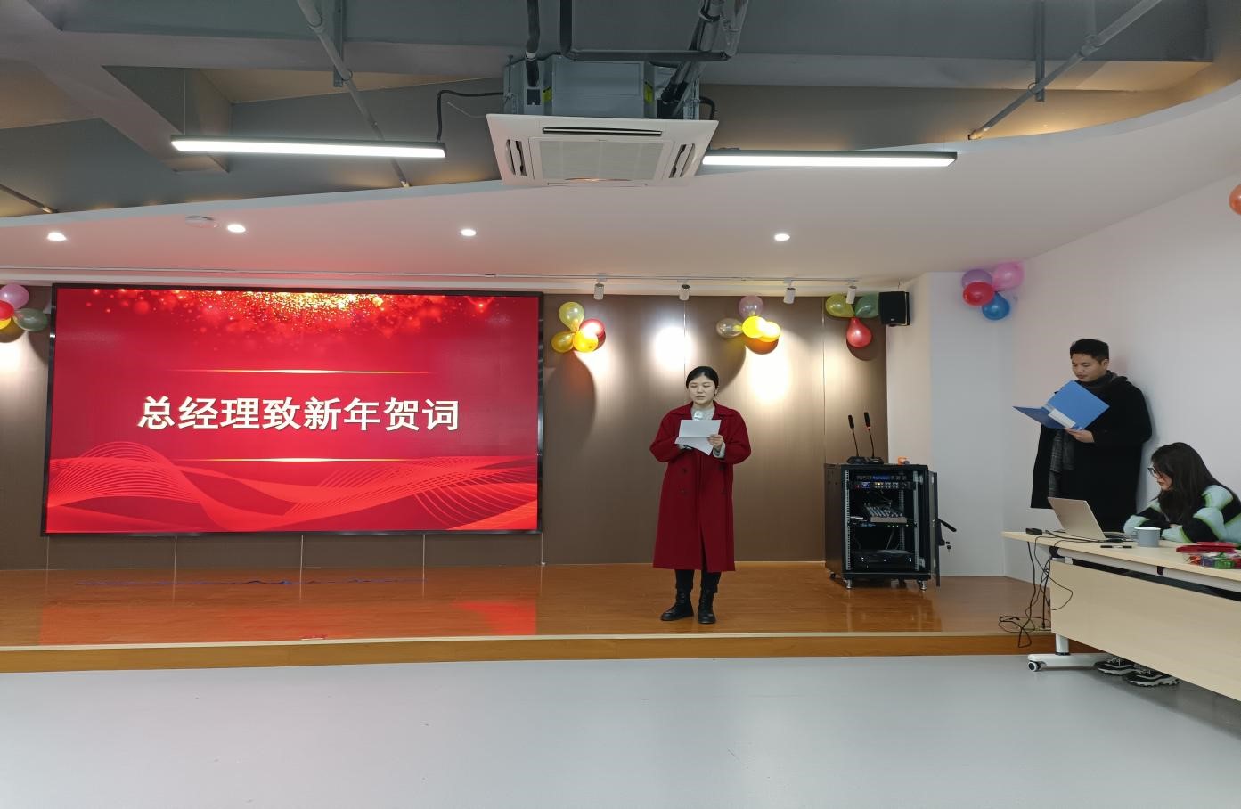 首先,聯歡會在陳雨希總經理熱情洋溢的新年賀詞中拉開序幕,就2023年已完成的業績及新的一年的工作目標作了表態發言,并宣讀了公司的表彰決定及給優秀員工頒獎。
