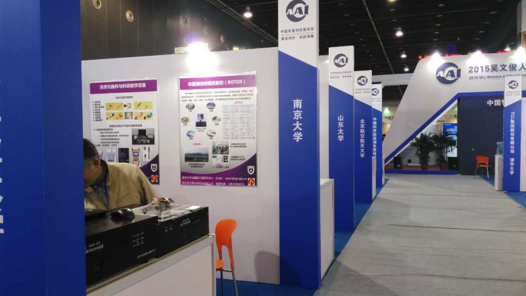 2015年11月30日,南京法艾博光電科技有限公司成果“連續分布式光纖智能感測技術及其應用”獲“吳文俊人工智能科學技術獎”進步獎一等獎,應邀參加2015中國義務國際裝備博覽會暨第五屆中國智能博覽會。張旭蘋老師帶領黃金源、王峰、陳海生、田曉波等人參加了展會。